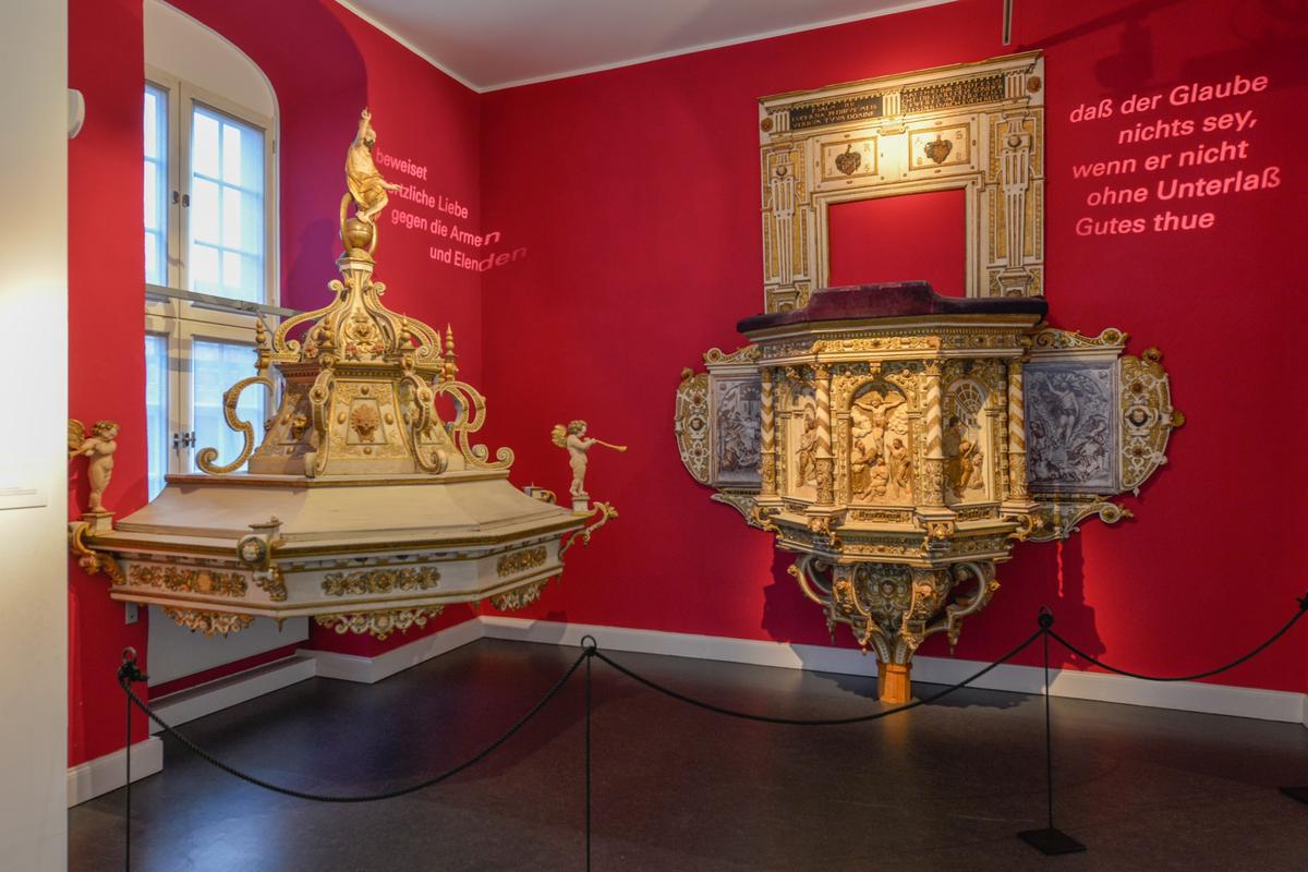 Der gesamte Rundgang durch das Waisenhaus dauert etwa eineinhalb Stunden und führt Sie von den Ausstellungen im Erdgeschoss über den Freylinghausen-Saal - Franckes alten Bet- und Singesaal - bis hinauf auf den Altan: Das ganze Haus steht Ihnen offen.